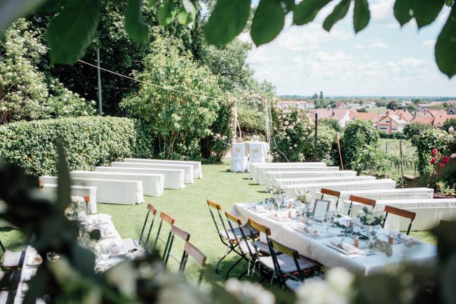 • Freie Trauung im Garten oder Trauung nebenan in der Kirche? Kurze Wege sind perfekt für eure Gäste.
